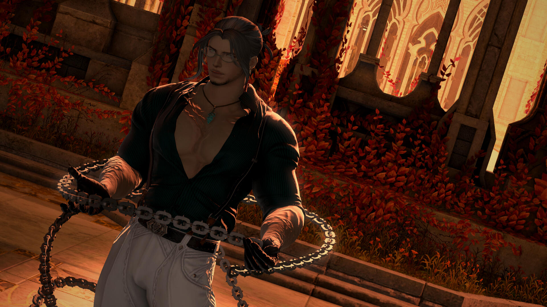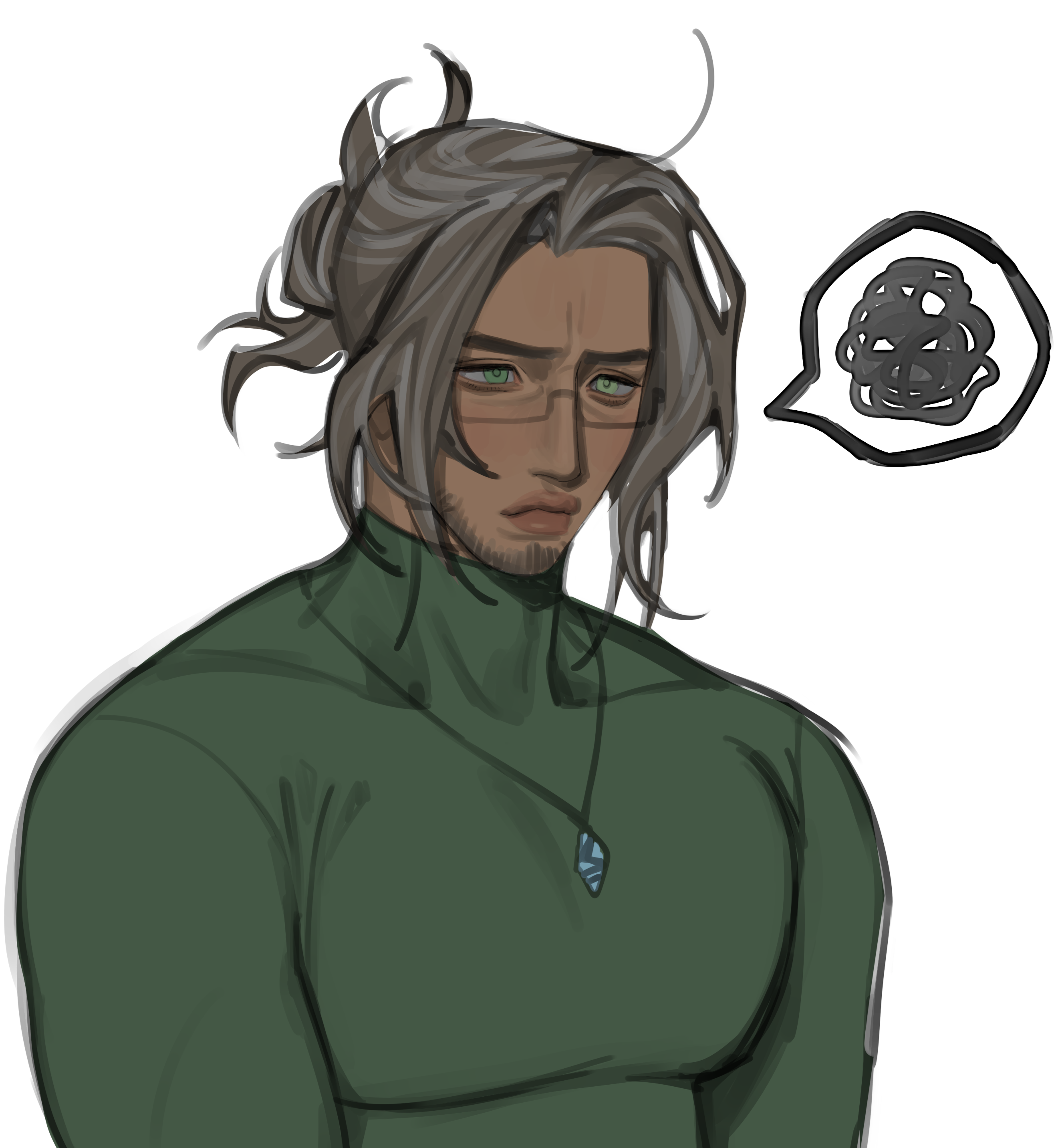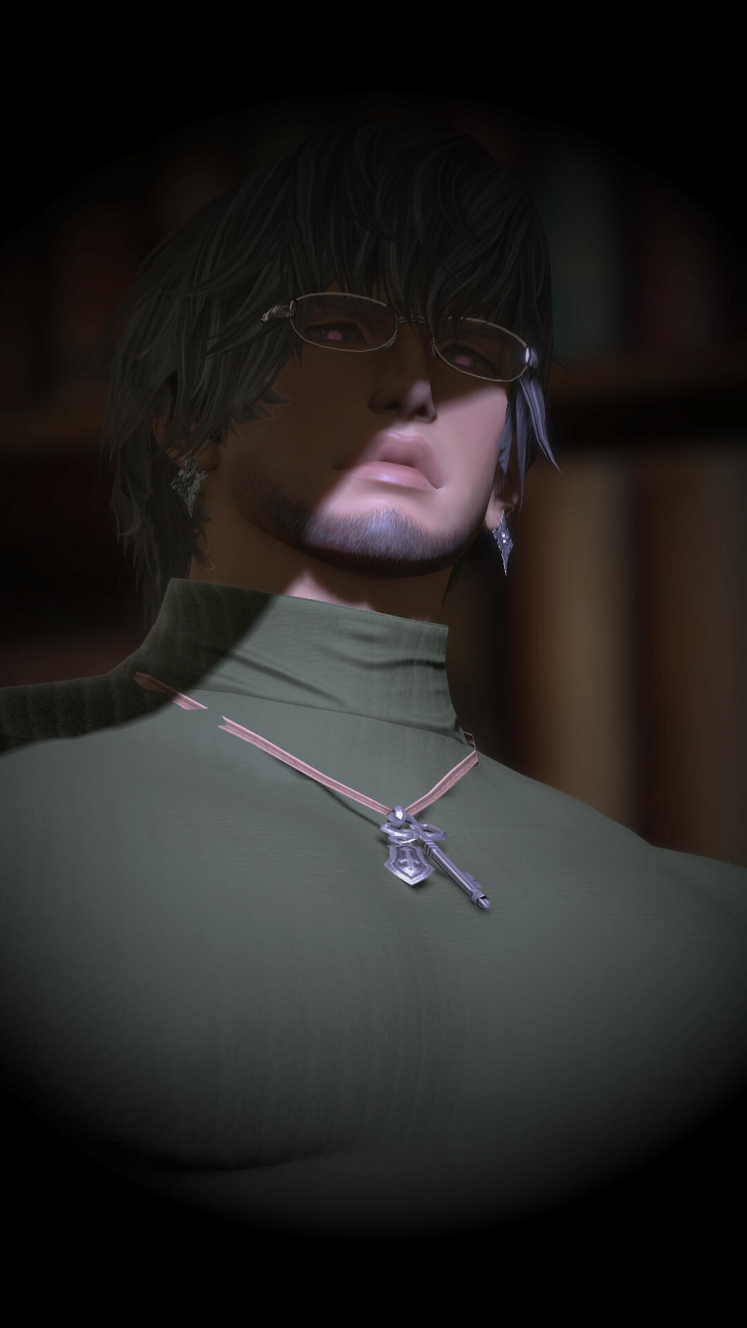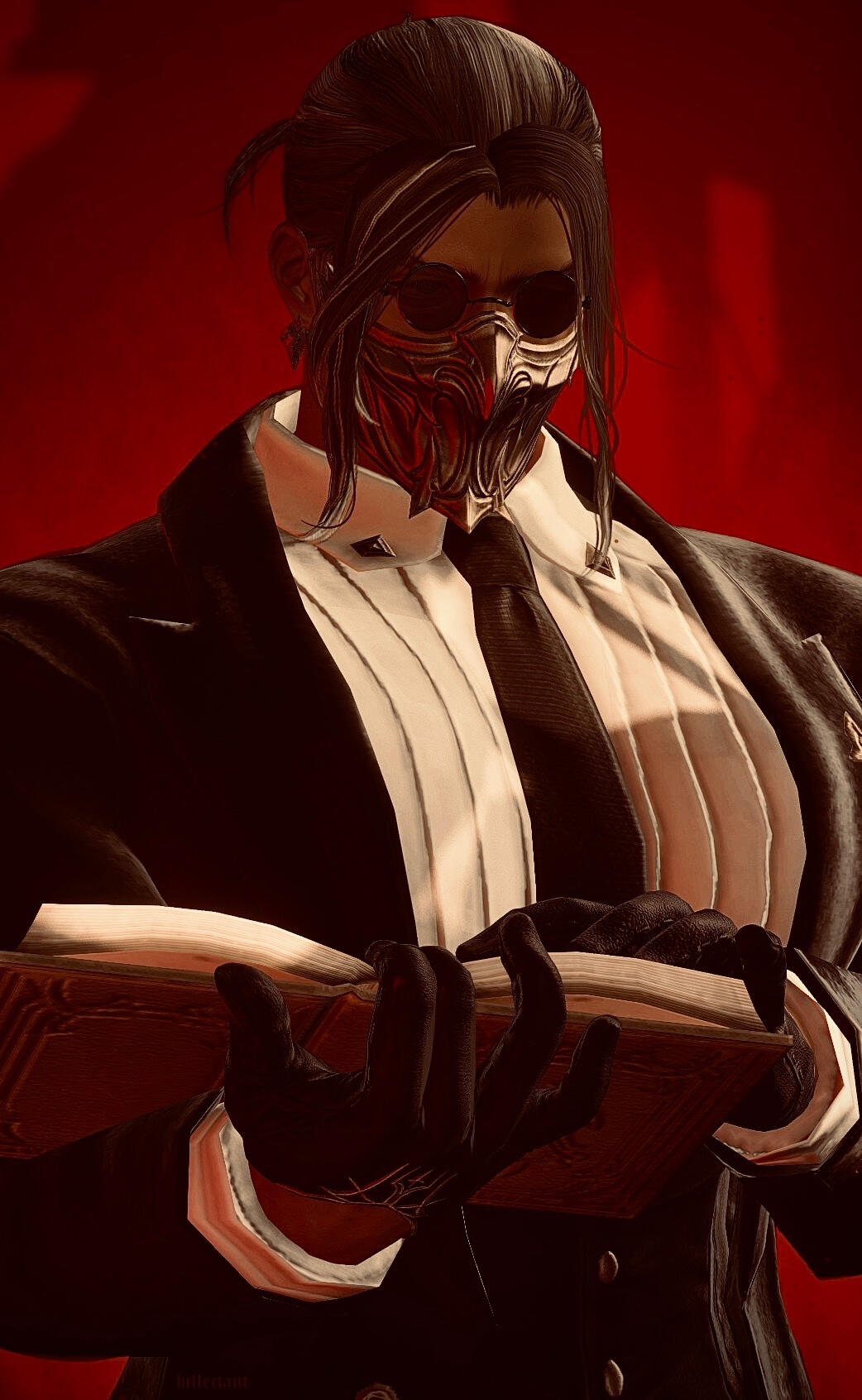 At 6’6, Bran stands taller than the average hyur and boasts a broad physique more akin to a highlander than a midlander - one that is surprisingly easy to obscure, something he is prone to doing.While often left obscured, his face is an odd contrast to the strength of his body; soft and youthful at the border of androgyny, with downturned eyes of two slightly varying shades of green. They're kept obscured most often, but in the rare moments where he is without a mask, one might have a chance to catch his pupils having taken on a magical pink glow.